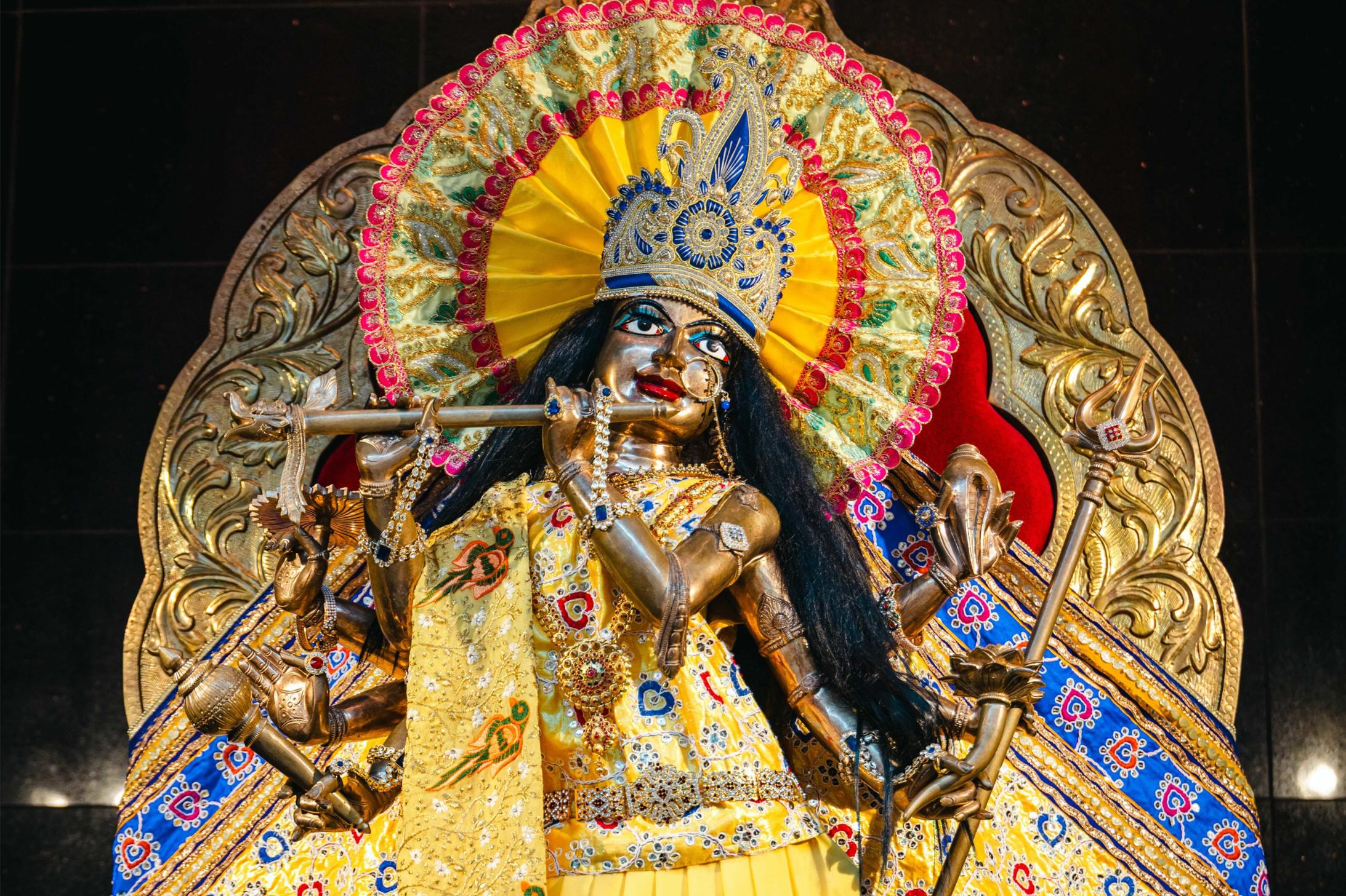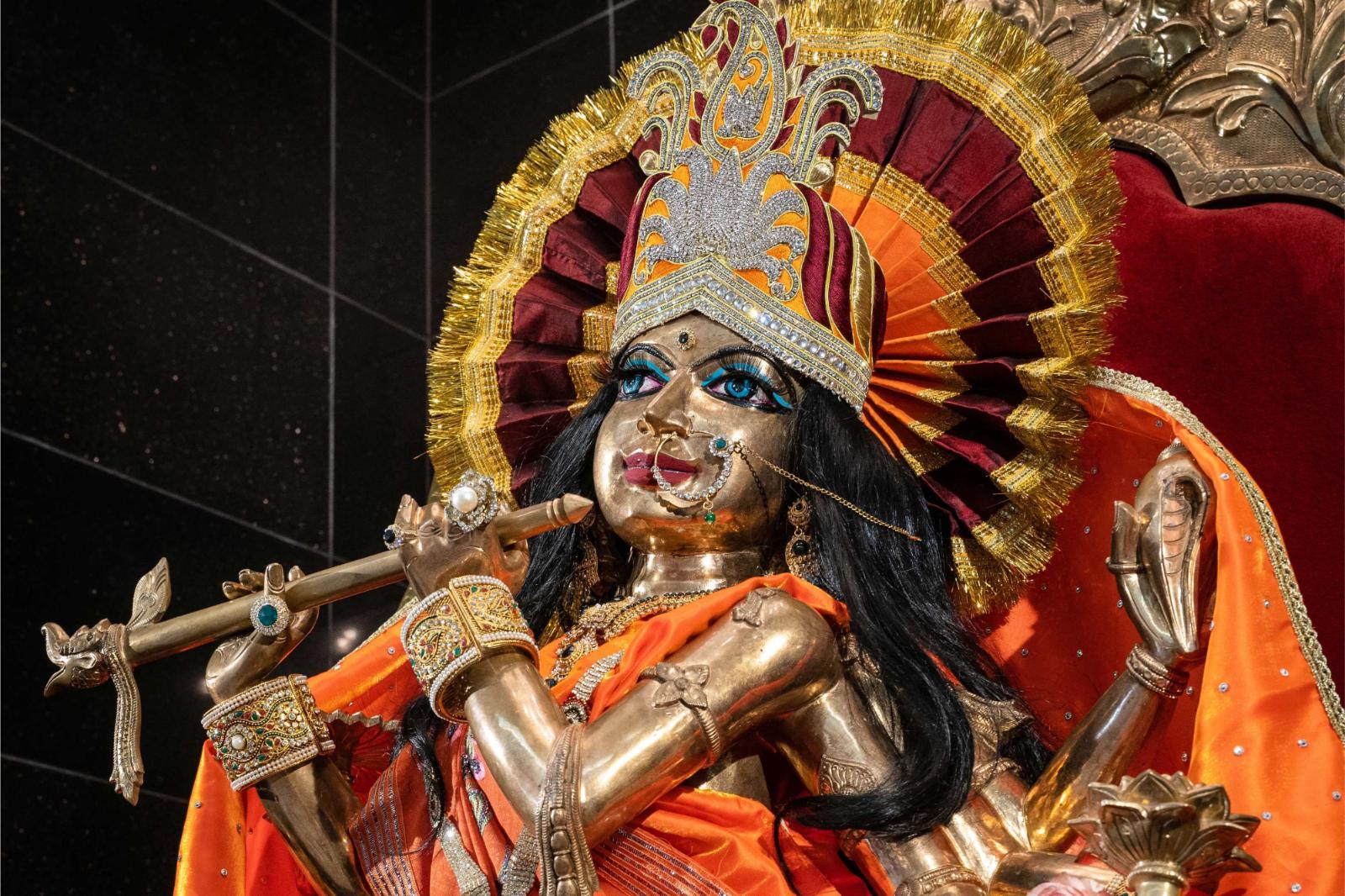 When I returned home, I wondered whom I should offer pūjā to. At first, I did it for Guruji. Then one day, I noticed a small statue on the window ledge — a man holding a flute. Suddenly I realised, “That’s Kṛṣṇa!”. My mother had bought it years earlier as decoration, so I began worshipping Kṛṣṇa with it.