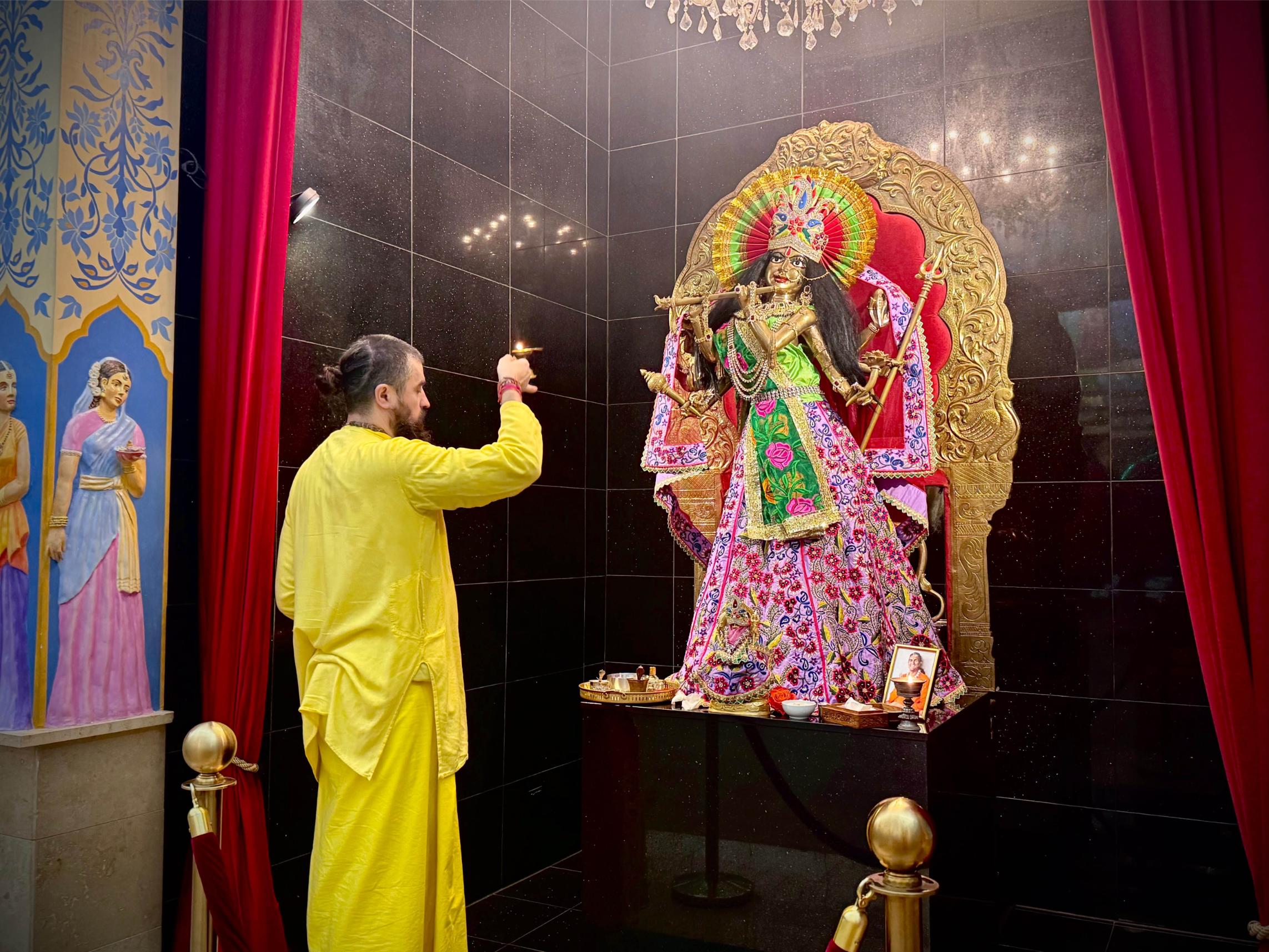 ´My relationship with Guruji has changed over time. Becoming a pūjārī brought me closer to Him during events. Serving Her has been a great blessing, giving me those rare moments of being physically near Guruji.